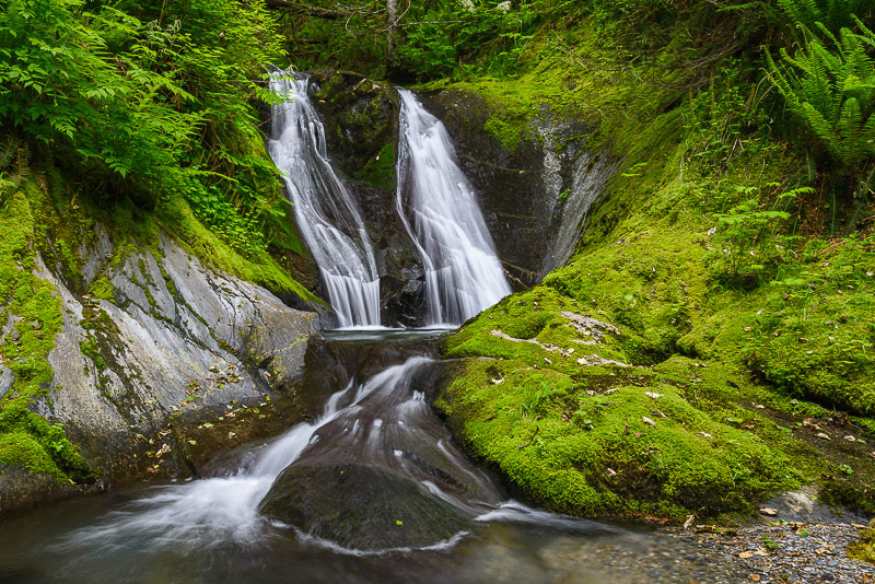 The system of classification of waterfall forms we use is a heavily modified derivative of the classifications outlined by Greg Plumb in his "Waterfall Lover's Guide to the Pacific Northwest" books. While plumb uses eight distnct forms, we wanted further granularity and opted to break down the hierarchy twofold: first based on the overall pitch of the waterfall, and then based on what shape the fall takes as it makes its descent. There are five primary Categories of falls in this system: Plunge, Horsetail, Steep Cascades, Shallow Cascades, and Rapids. Additional deliniation is then applied depending on characteristics such as the breadth of the falls, whether it splits into two or more channels, whether it falls in multiple successive drops, etc. For more information on our waterfall form classifications, see the Help page.