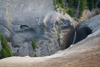 Cascade Creek is a tiny tributary of the upper Rogue River near Crater Lake in southern Oregon. The creek heads in a small spring located just below the Rogue River trail and flows for about a half mile before gliding about 75 feet down the side of an impressively expansive canyon cut in the Mazama Ash formation - a reminder of the areas volcanically violent past. Scouring in the streambed seems to indicate the creek can move a bit of water during peak snowmelt, but when the melt has finished, the creek appears to be fed fairly consistently by the small spring, and I have no reason to think it dries out at any time during the year.