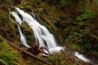 From the Lake Quinault Lodge, drive east along the South Shore Road for just a couple hundred yards to the Falls Creek Bridge (above Falls Creek Falls) and park on the left-hand, downstream side. Take the marked trail across the street for .4 miles to a junction just beyond a bridge crossing Falls Creek. Go right for another .1 mile to an overlook of the falls. In February of 2000, the main trail was closed due to storm damage, but it's now open. You can clearly see where the trail suffered in a large clearing where possibly hundreds of trees were blown down like toothpicks.