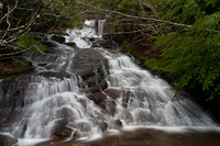 This is the only true roadside waterfall in the upper basin of French Creek. The falls cascade about 25 feet down a stair step section of the stream before flowing under the road. The topographic maps show the falls on this branch of French Creek as being a short distance upstream. I suspect this whole stretch of creek is probably one long waterfall, and if so, then this and the waterfall marked on the map (listed here as French Basin Falls # 2) should be combined to one waterfall. As it is for now, this one is probably only of interest to dedicated waterfall hunters.