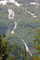 Panhandle Falls is a long series of falls and slides that pour out of Panhandle Lake, dropping about 1000 feet before it hits a flat area near an old logging road. The falls can be partially seen from the end of FR 2162 near the Green River trailhead (and may be more visible near the Pole Star Mine further down spur 036), but approaching the falls closely will require following the aforementioned logging road for a little over a mile to the bottom of the falls. I expect it to be heavily overgrown and possibly not even followable in many places.