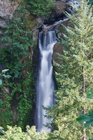 Exit Interstate 5 in Woodland and head east on Highway 503 towards Cougar. After traveling just over 16 miles watch for a large paved pullout on the right side of the road just before the long, high bridge across Rock Creek. Park here and walk mere feet to the fenced viewpoint where the falls can be seen despite a few obstructing trees.