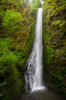 Shotgun Falls is a very distinct Oregon waterfall, dropping over the distinct basalt formations which produce so many of the lower elevation waterfalls in the foothills of the Willamette Valley. The falls, plunging 96 feet along small Shotgun Creek, is the only cataract currently cataloged in the Molalla River basin. However, given the geology seen along nearby Butte, Abiqua and Silver Creeks, there are almost certainly more waterfalls in the area waiting to be found. Because Shotgun Creek drains from a fairly small area, the impressiveness of the falls will decrease as the year progresses, very possibly reducing to just a trickle during the late summer months. About 100 feet downstream from the falls is a 15 foot tall lower falls.