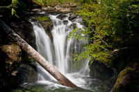 Smith Falls is a decent little waterfall along Champion Creek, though considering the nature of the gorge downstream it seems rather anticlimactic in comparison. Driving up to the falls, one must possess nerves of steel and a car they don't mind subjecting a little torture to. The road is not maintained by the forest service, but since there are numerous private mining claims in the area, it remains drivable most of the year. Four wheel drive and high clearance are, however, recommended - there are many parts where substantial rocks protrude 6-8 inches above the road service. The road climbs up a precarious path, at times perched between a solid wall of rock on one side, and a sheer drop of over 100 feet on the other side, so hats off to the constructors of the road (just hope you don't have to pass anyone in one of these areas). After two miles of white knuckle driving, the stream finally meets up with the road at this 25-foot waterfall, easily visible without any sort of scrambling or bushwhacking. Champion Creek is fairly large, so it maintains a good flow most of the year, but I imagine this would still be a more impressive waterfall earlier in the year.