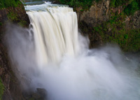 Because of the hydroelectric regulation, the falls do not regularly flow with the natural full volume of the river. However in the spring when the snow in the Cascade Mountains is melting at full bore, and in the early winter months when heavy rain frequents the Northwest, the river often swells to impressive proportions and it is temporarily restored to its natural splendor. During such periods, spray from the falls swirls around in the amphitheater so fervently that it can rise well above the top of the falls, and even be blinding at times (for visitors standing along the viewpoints that is).