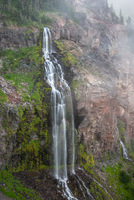 Both falls drop into a large horseshoe-shaped alcove in the cliffs below Spray Park. The larger of the two streams falls 168 feet, first in a nearly free-fall drop then skipping over rock and finally entering a true free-fall for the final two-thirds of its descent. The smaller of the two falls, which is situated at a 90-degree angle perpendicular to the larger fall, drops in two side-by-side streams itself, falling 103 feet to the talus slope below. Because of how the smaller of the two falls is oriented, we found it difficult to photograph - perhaps a future survey will yield a more revealing perspective.
