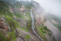 Tillicum Point Falls is a surprisingly significant hidden waterfall found at the southwest edge of Spray Park in Mount Rainier National Park. The falls are actually two parallel waterfalls which occur along completely independent streams that face one another as they drop off the Spray Park plateau (since the streams are separate, we may ultimately end up splitting this entry into two upon further review). The smaller stream originates in snowmelt tarns and meadows in Spray Park itself, while the larger of the two is sourced in part of the remnant of the Flett Glacier on Observation Rock.