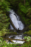 Triple Creek features a series of small but fairly pretty waterfalls a short distance above where it merges with the South Fork of the Stilliguamish River near the town of Verlot. Starting out, the creek splits around a sharp, craggy rock outcrop and drops 22 feet in two channels, with the falls spreading out to over 50 feet in width. Just downstream the second drop plunges a sheer 27 feet after the creek makes a sharp Z-shaped double bend. The third drop is a narrow flume which falls about 8 feet and splits into twin channels when the creek is running high, followed by a 5 foot drop in a narrow section of the gorge which then leads into the final 22-foot fan-shaped fall. Each individual section of the falls is separated from the next by about 50-100 linear feet of stream, and while it is very difficult (if not impossible) to see more than one drop from any angle, all of the tiers are close enough that they should be considered one collective set of falls rather than individual entities.